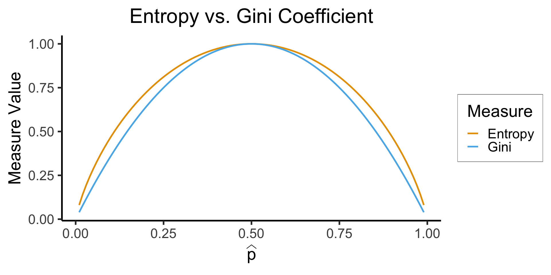 title = "Entropy vs. Gini Coefficient"