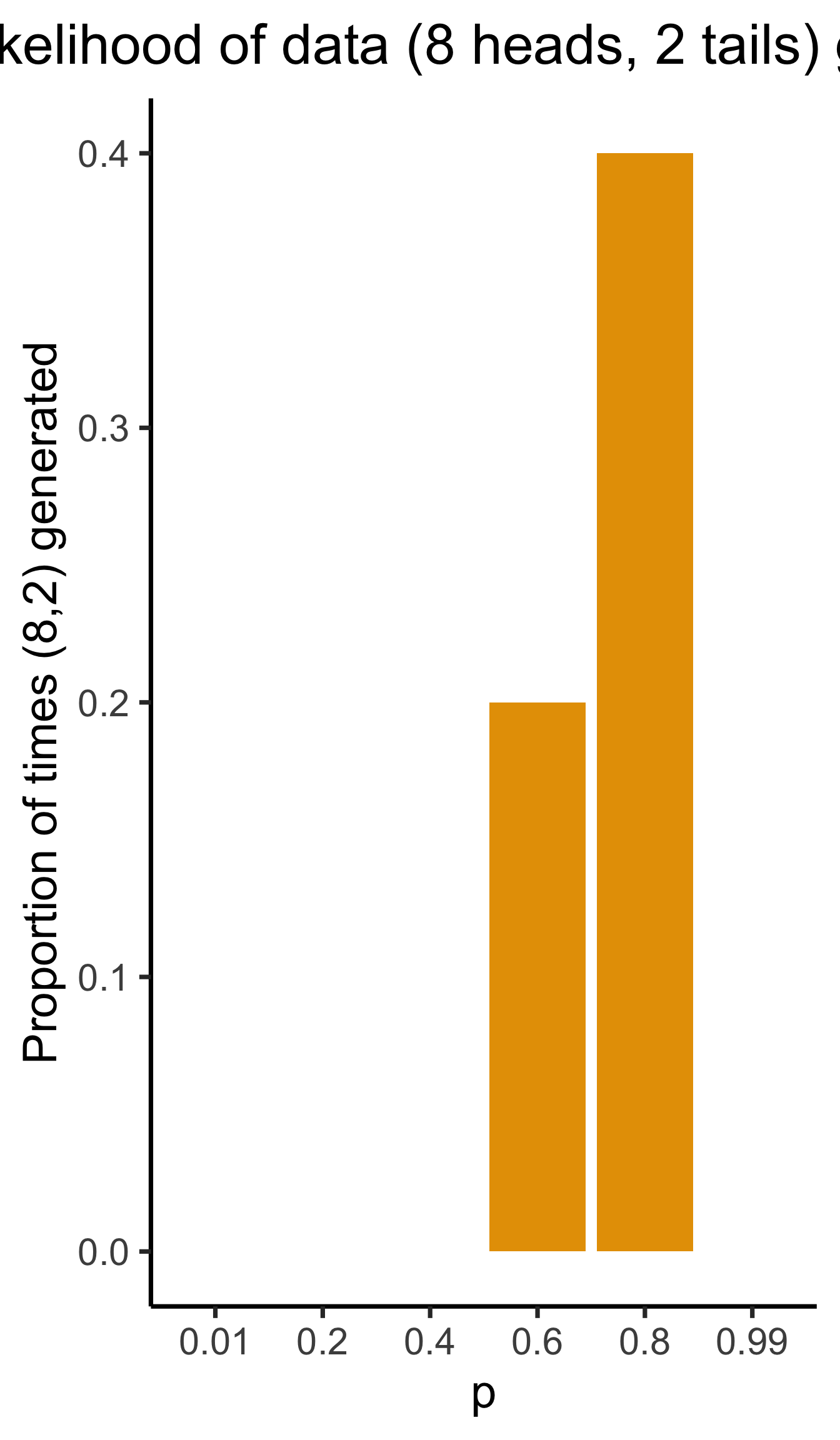 - If we had terms that were added rather than multiplied, we’d have a much easier time: \(\frac{d}{d\param{p}}\left[ \lik(x_1) + \lik(x_2)\right] = \frac{d}{d\param{p}}\lik(x_1) + \frac{d}{d\param{p}} \lik(x_2)\)4