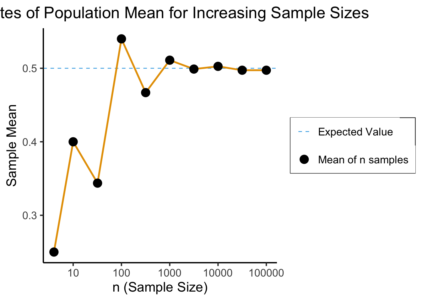 \[ \DeclareMathOperator*{\argmax}{argmax} \DeclareMathOperator*{\argmin}{argmin} \newcommand{\bigexp}[1]{\exp\mkern-4mu\left[ #1 \right]} \newcommand{\bigexpect}[1]{\mathbb{E}\mkern-4mu \left[ #1 \right]} \newcommand{\convergesAS}{\overset{\text{a.s.}}{\longrightarrow}} \newcommand{\definedas}{\overset{\text{def}}{=}} \newcommand{\definedalign}{\overset{\phantom{\text{def}}}{=}} \newcommand{\eqeventual}{\overset{\mathclap{\text{\small{eventually}}}}{=}} \newcommand{\Err}{\text{Err}} \newcommand{\expect}[1]{\mathbb{E}[#1]} \newcommand{\expectsq}[1]{\mathbb{E}^2[#1]} \newcommand{\fw}[1]{\texttt{#1}} \newcommand{\given}{\mid} \newcommand{\green}[1]{\color{green}{#1}} \newcommand{\heads}{\outcome{heads}} \newcommand{\iid}{\overset{\text{\small{iid}}}{\sim}} \newcommand{\lik}{\mathcal{L}} \newcommand{\loglik}{\ell} \newcommand{\mle}{\textsf{ML}} \newcommand{\nimplies}{\;\not\!\!\!\!\implies} \newcommand{\orange}[1]{\color{orange}{#1}} \newcommand{\outcome}[1]{\textsf{#1}} \newcommand{\param}[1]{{\color{purple} #1}} \newcommand{\pgsamplespace}{\{\green{1},\green{2},\green{3},\purp{4},\purp{5},\purp{6}\}} \newcommand{\prob}[1]{P\left( #1 \right)} \newcommand{\purp}[1]{\color{purple}{#1}} \newcommand{\sign}{\text{Sign}} \newcommand{\spacecap}{\; \cap \;} \newcommand{\spacewedge}{\; \wedge \;} \newcommand{\tails}{\outcome{tails}} \newcommand{\Var}[1]{\text{Var}[#1]} \newcommand{\bigVar}[1]{\text{Var}\mkern-4mu \left[ #1 \right]} \]