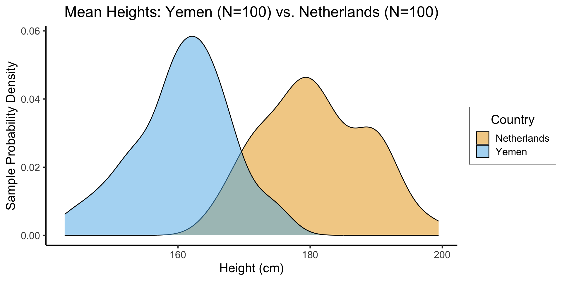 title = "Mean Heights: Yemen (N=100) vs. Netherlands (N=100)",