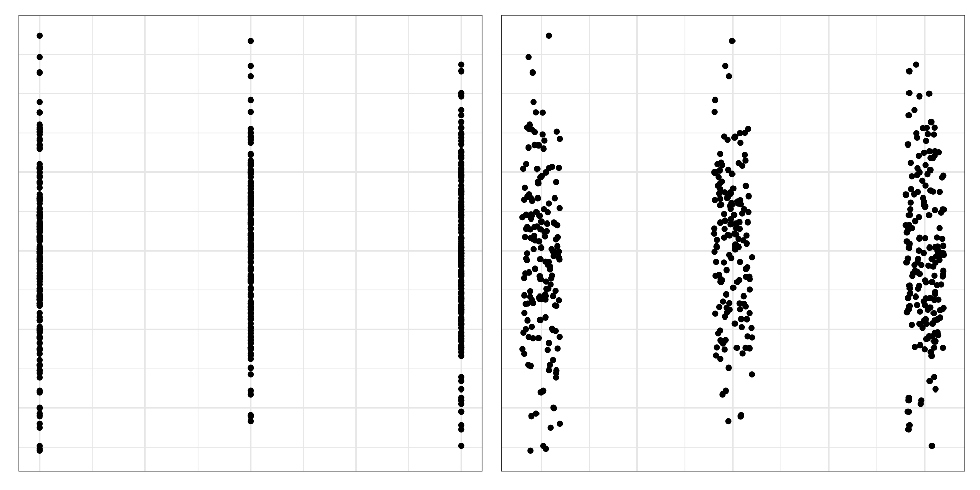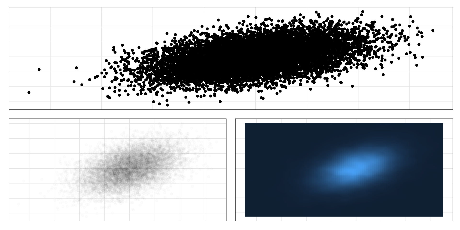 • Avoid overplotting since many points can occupy the same space and obscure one another