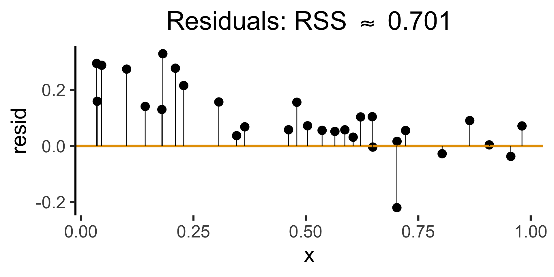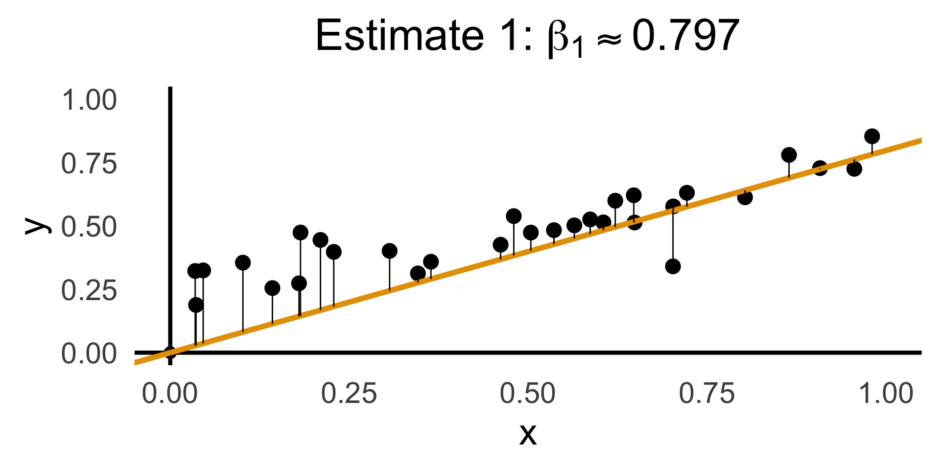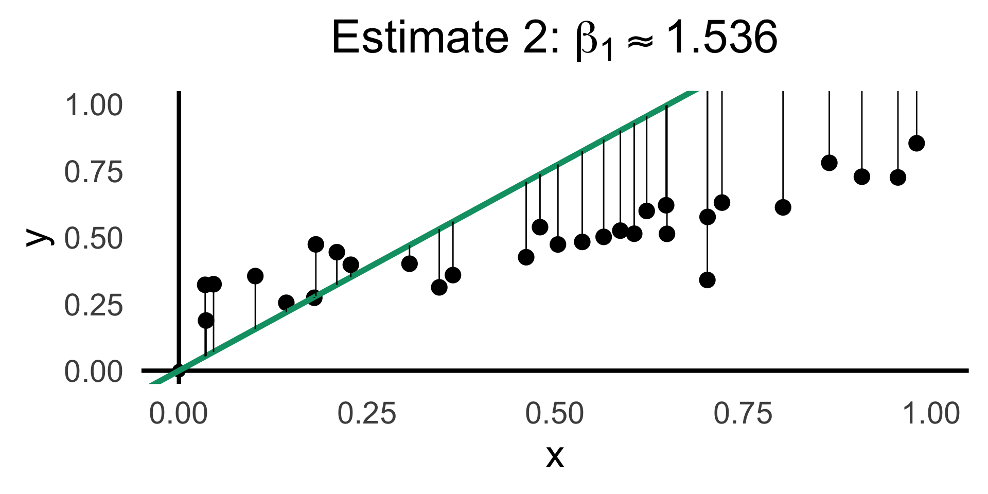 But, we’d like to find estimates \(\widehat{\beta}_0\) and \(\widehat{\beta}_1\) that produce the “least wrong” predictions: motivates focus on residuals…