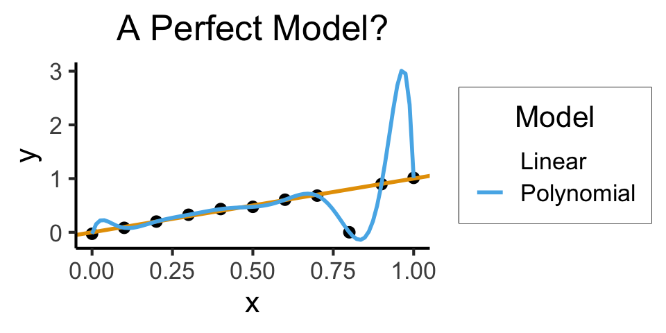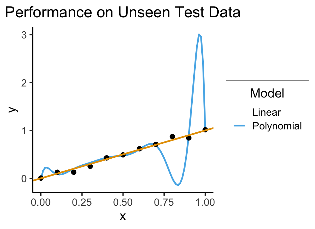 \[ \mathsf{Complexity}(y_{pred} = \beta_0 + \beta_1 x + \beta_2 x^2 + \beta_3 x^3) > \mathsf{Complexity}(y_{pred} = \beta_0 + \beta_1 x) \]