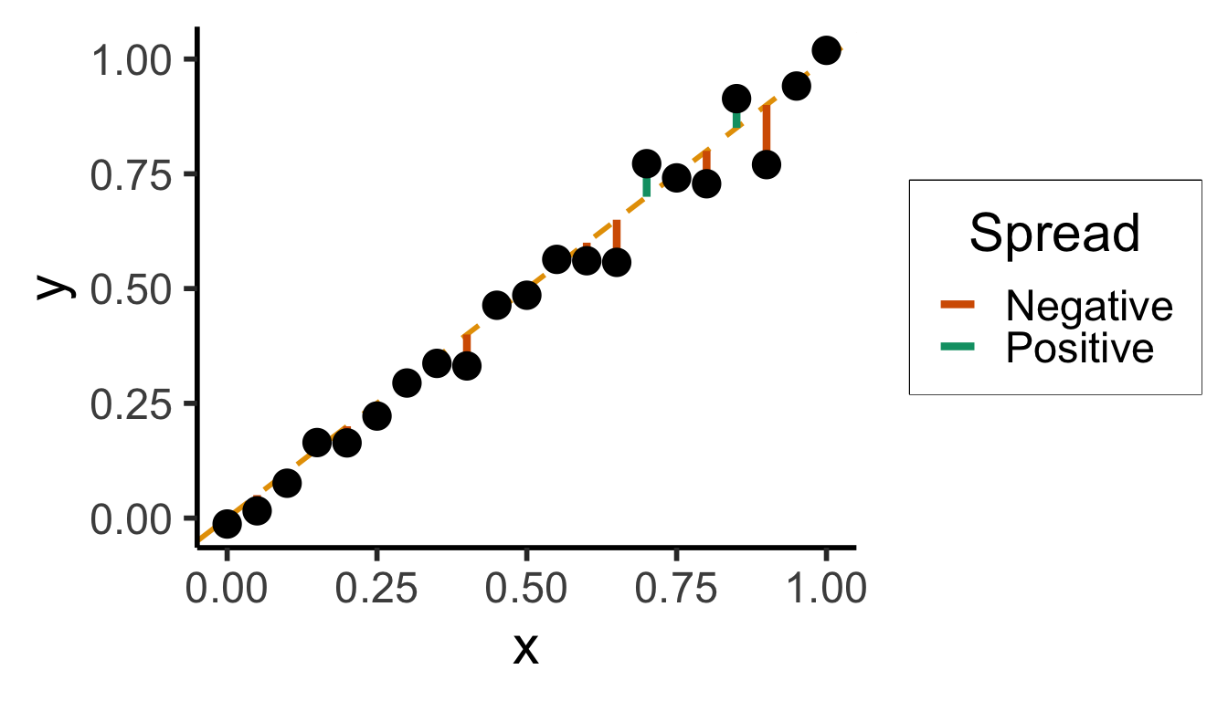 df <- tibble(x = x, y = y, spread = spread)