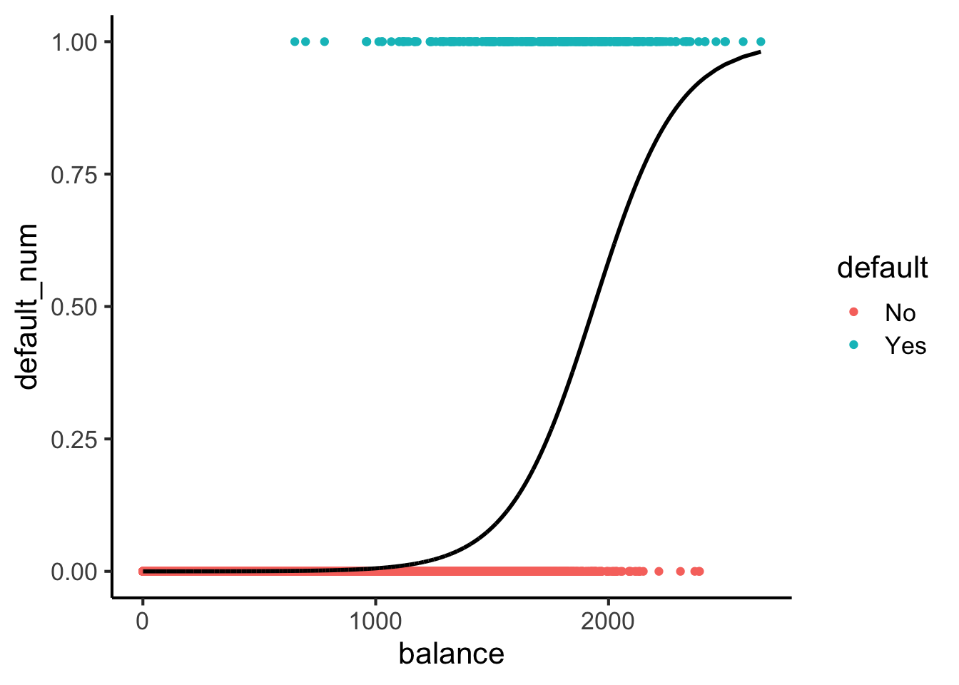 logistic_model <- glm(default_num ~ balance, family=binomial(link='logit'),data=default_df)