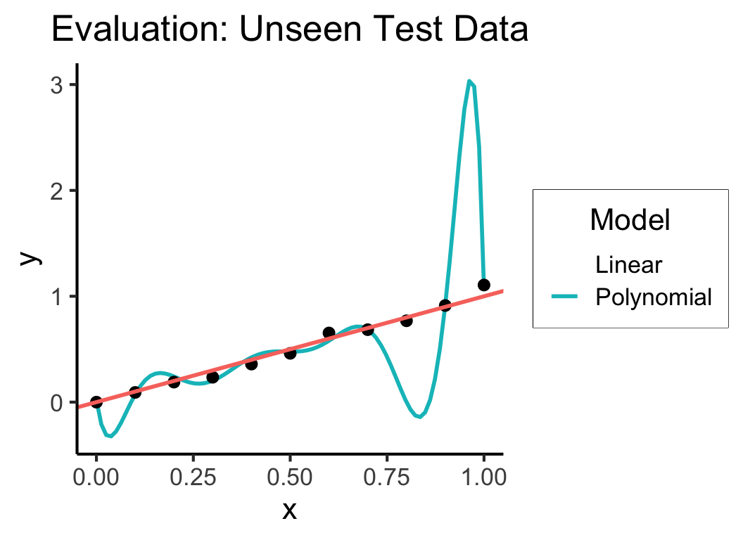 \[ \mathsf{Complexity}(\widehat{y} = \beta_0 + \beta_1 x + \beta_2 x^2 + \beta_3 x^3) > \mathsf{Complexity}(\widehat{y} = \beta_0 + \beta_1 x) \]