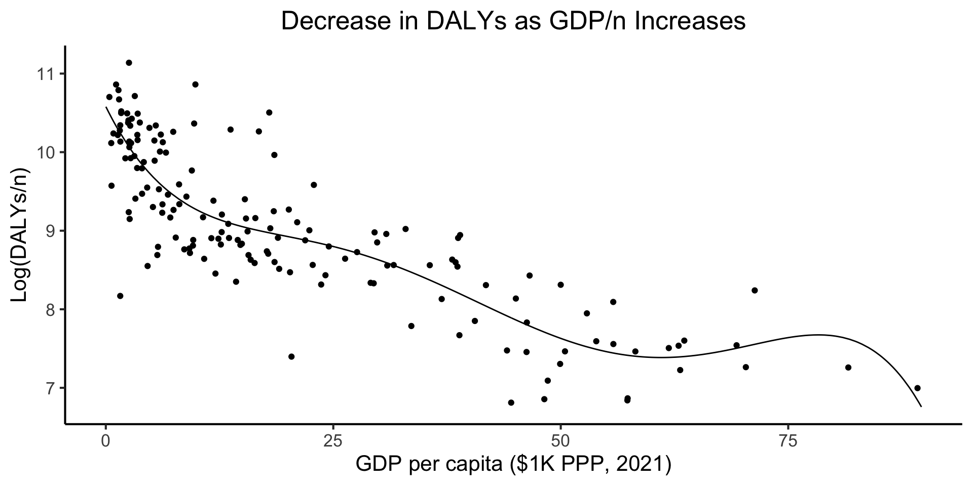 daly_plot <- daly_df |> ggplot(aes(x=gdp_pc_1k, y=log_dalys_pc, label=name)) +