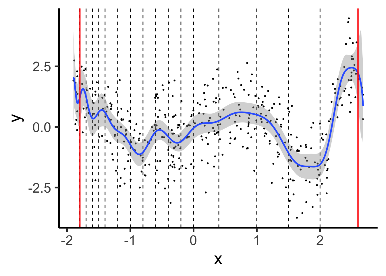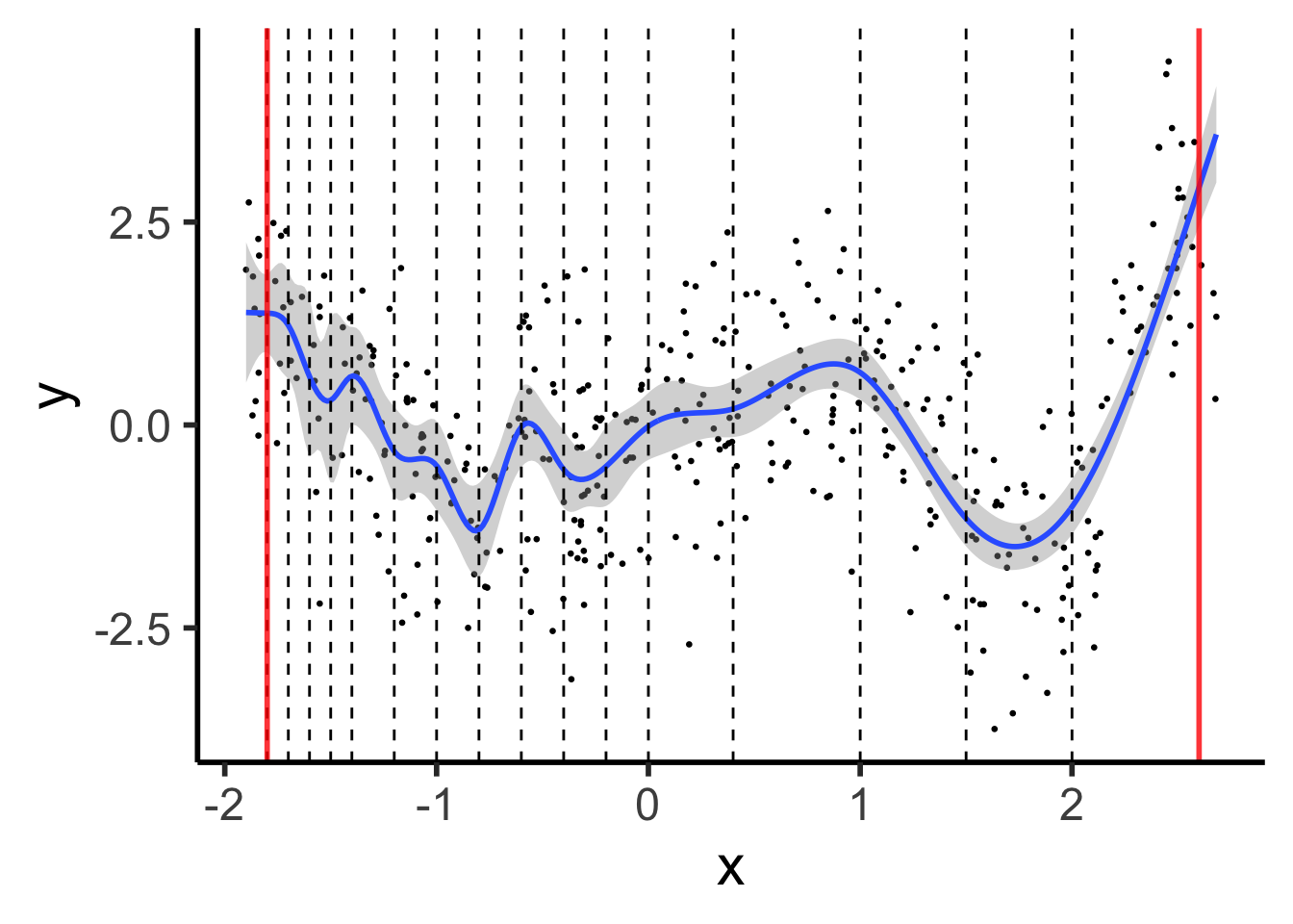 formula=y ~ ns(x, knots=knot_vec, Boundary.knots=c(xmin + 0.1, xmax - 0.1)),