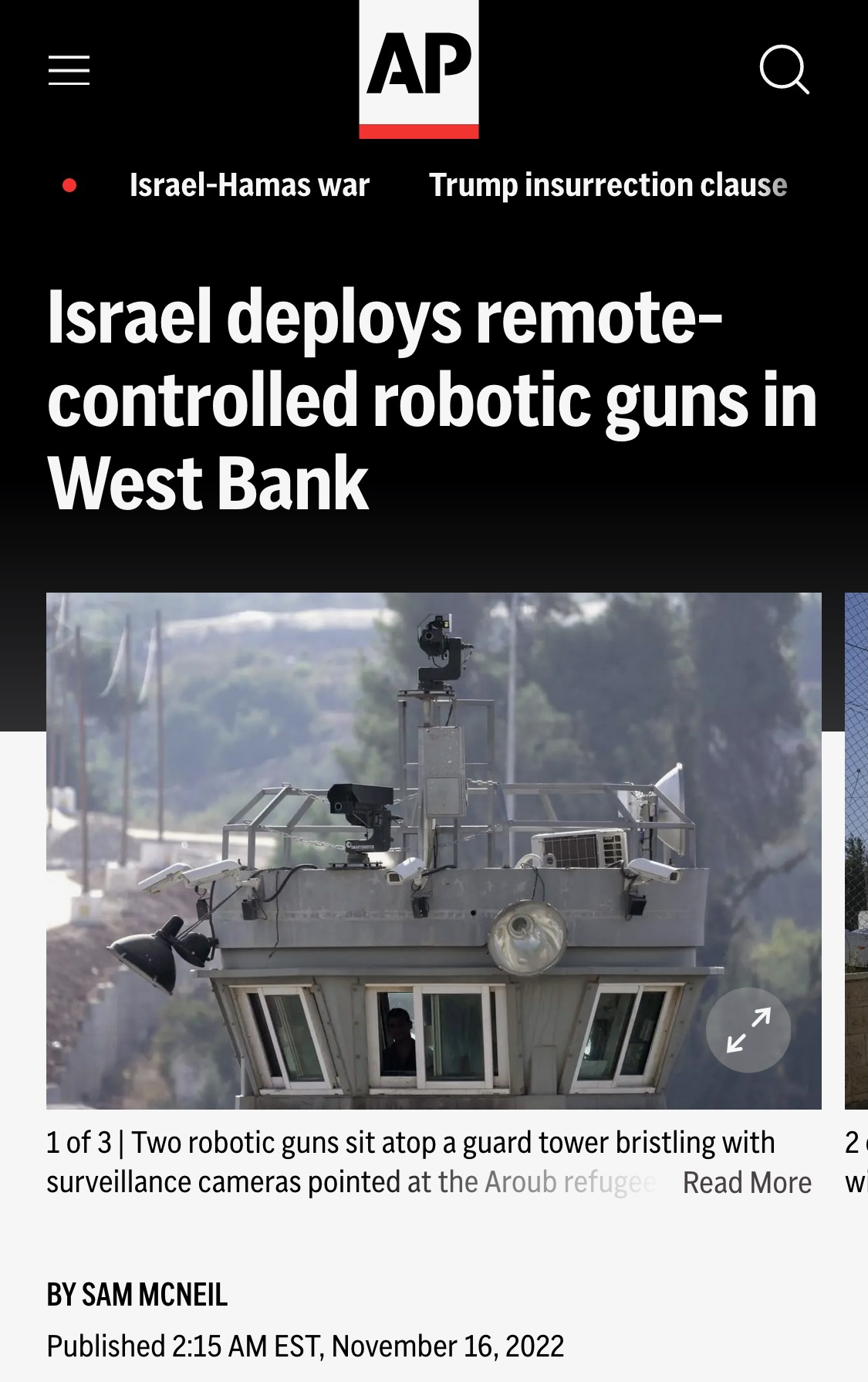 McNeil, Sam. 2022. “Israel Deploys Remote-Controlled Robotic Guns in West Bank.” AP News, November. https://apnews.com/article/technology-business-israel-robotics-west-bank-cfc889a120cbf59356f5044eb43d5b88.