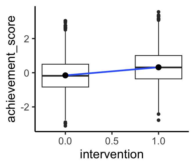 intervention in the dataset: a seminar on growth mindset for high school studentsachievement_score in the dataset: performance on state’s standardized test\[ \mathbb{E}[Y \mid T = 1] - \mathbb{E}[Y \mid T = 0] \]