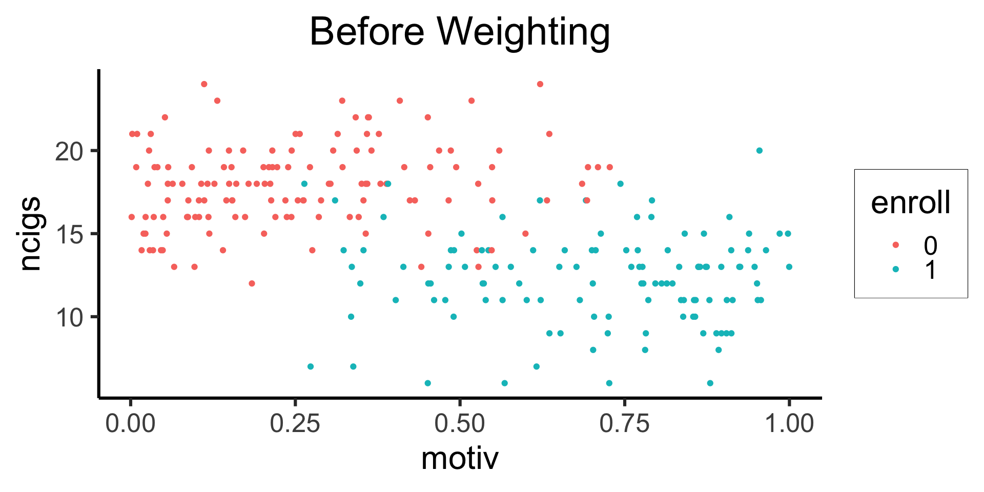 lm_weightit(formula = ncigs ~ enroll, data = smoke_df, weightit = W_default)