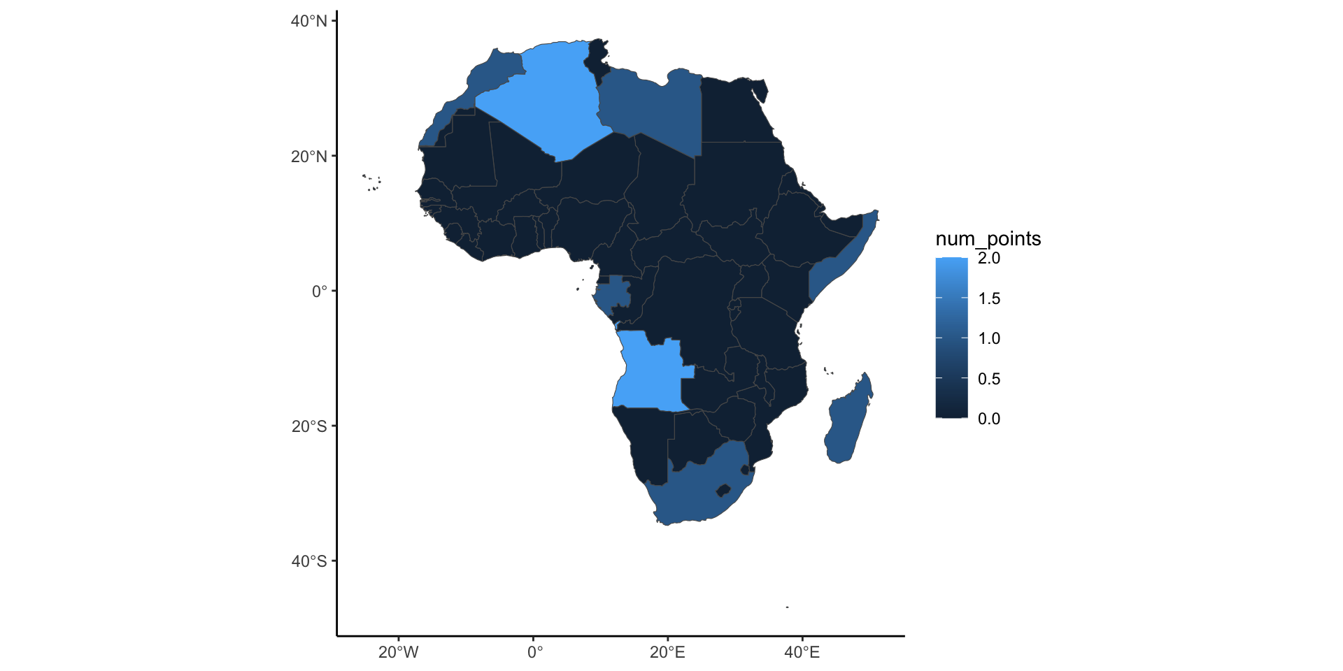 | Angola | 2 | MULTIPOLYGON (((13.07275 -4… |