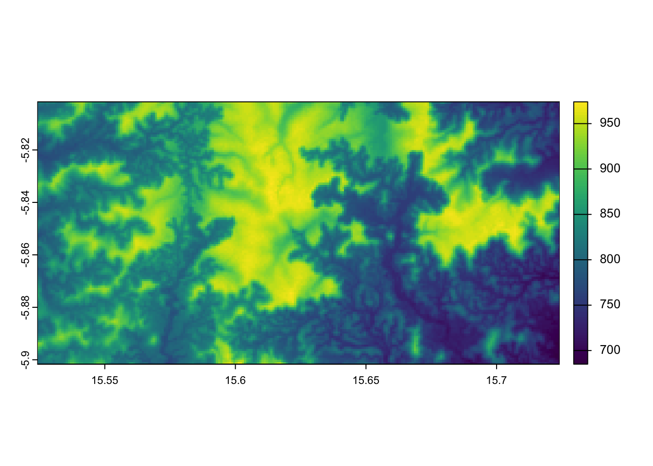 elev <- geodata::elevation_3s(lon = lon_center, lat = lat_center, res=2.5, path = getwd())