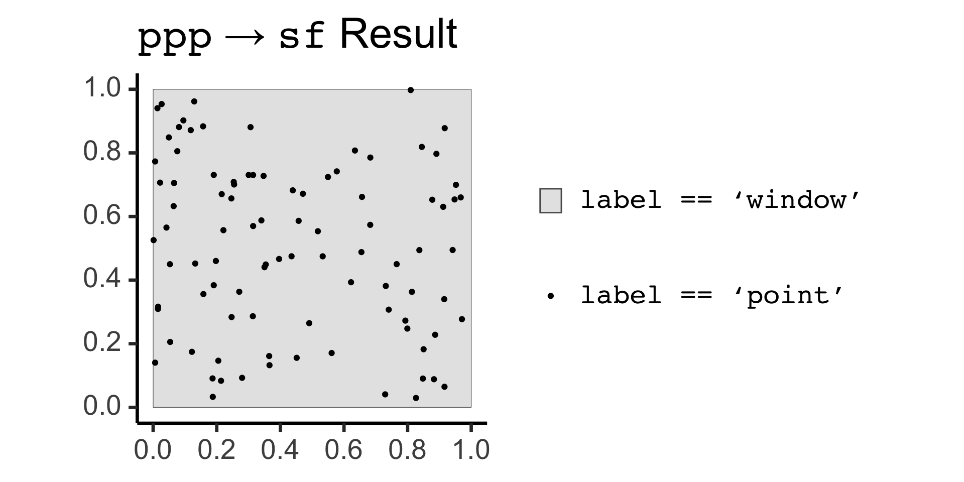 labs(title = "<span style='font-family: mono'>ppp</span> → <span style='font-family: mono'>sf</span> Result")