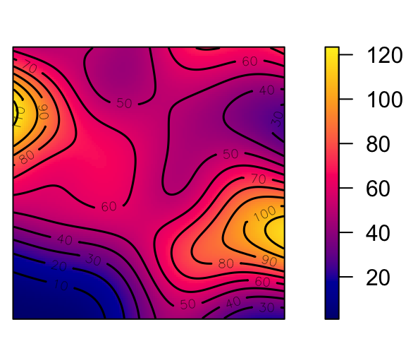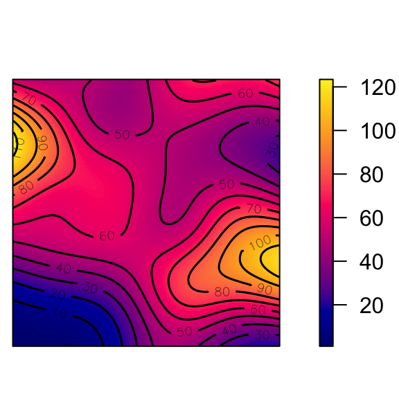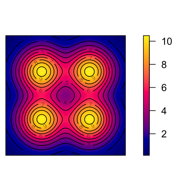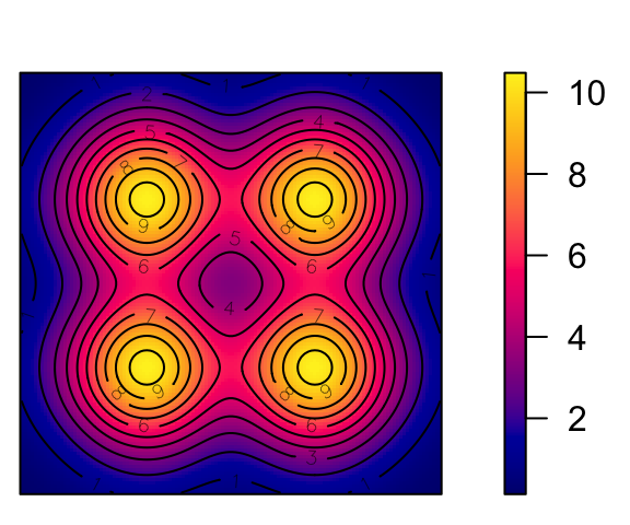 contour(den, add = TRUE) # contour plot