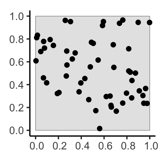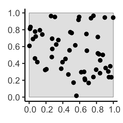 | \(N = 60\) Events | Events modeled individually \(\implies\) Intensity function \(\lambda(\mathbf{s})\) |