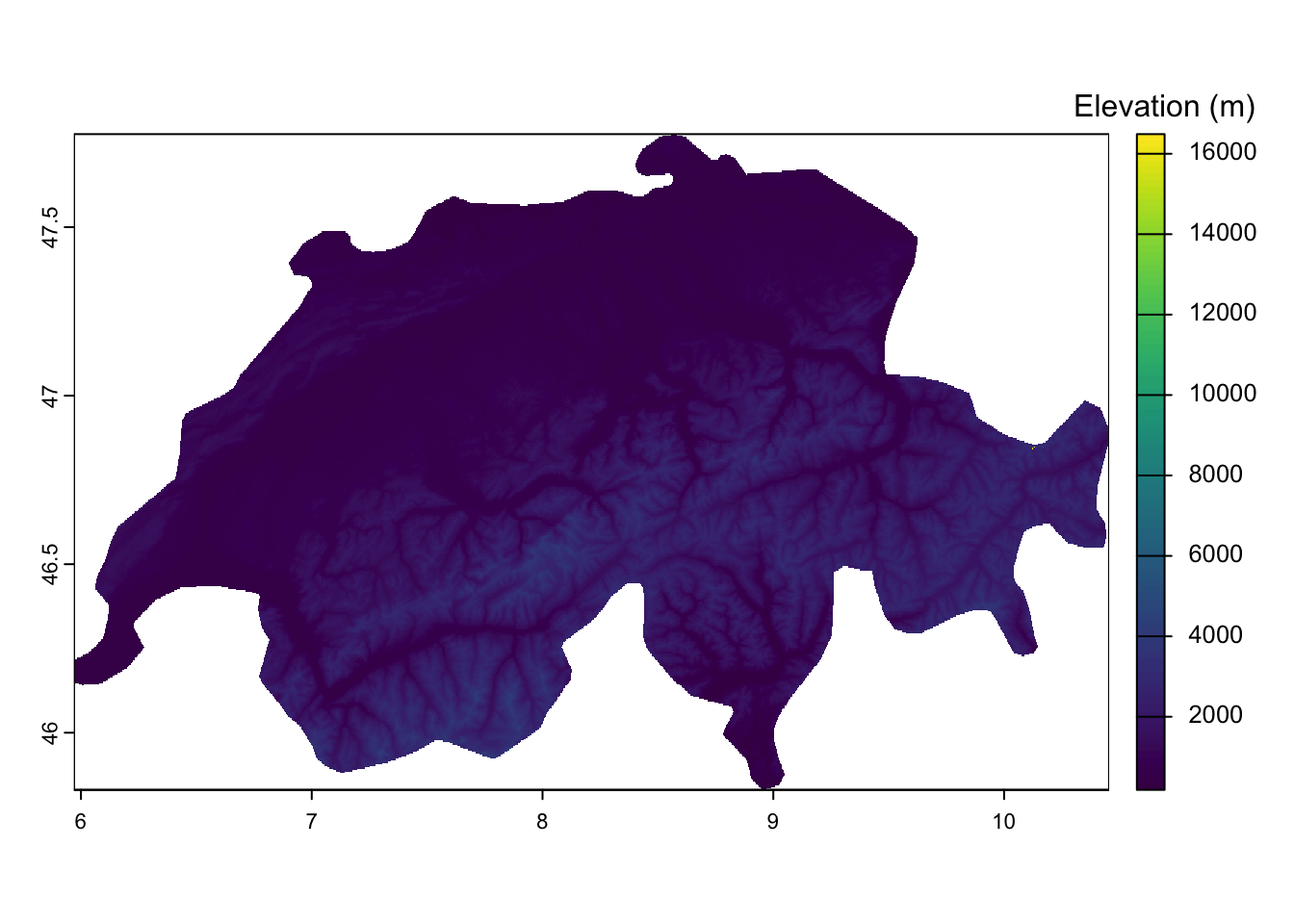 elevatr v0.99.0 NOTE: Version 0.99.0 of 'elevatr' uses 'sf' and 'terra'. Use